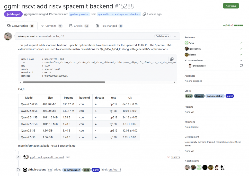 llamacpp提交patch:ggml: riscv: add riscv spacemit backend by alex-spacemit · Pull Request #15288 · ggml-org/llama.cpp